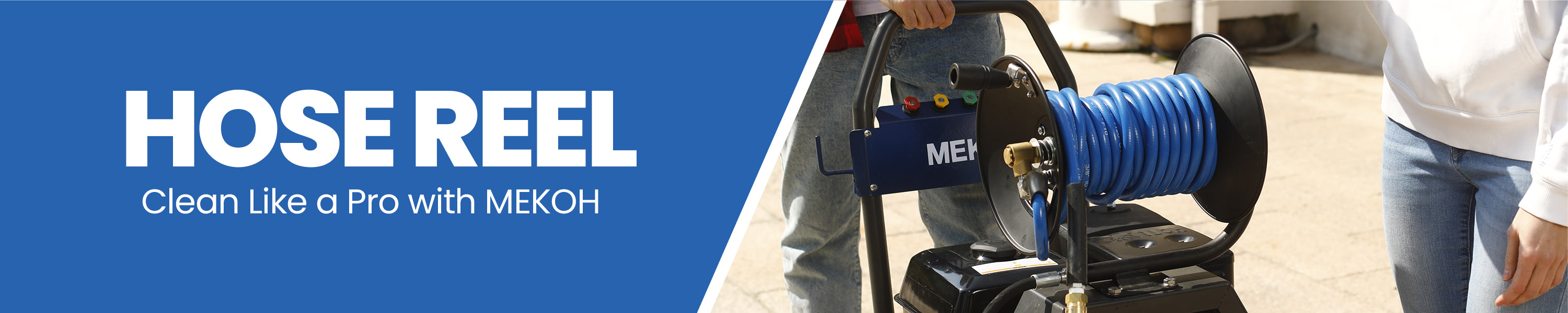 MEKOH 150FT x 3/8” Pressure Washer Hose Reel, Manual Power Washer Hose Reel 300FTx1/4” with M22 Fitting, Heavy Duty 4500 PSI Manual Power Washer Reel with Solid Brass Swivel, Fits 1/4” & 3/8” Hose, Wall/Trailer/Van Mount High Pressure Hose Storage