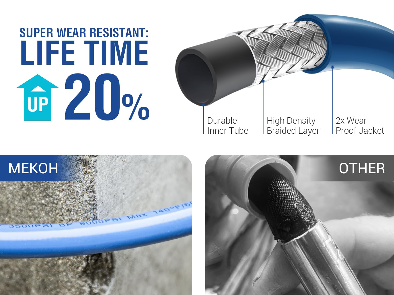- 【Secure M22 Brass Fittings】: Fitted with standard M22 14mm solid brass connectors, the MEKOH pressure washer extension hose offers universal compatibility with most spray guns and power washer models. Leak-proof and rust-resistant fittings ensure long-lasting durability. Backed by MEKOH’s lifetime customer support.